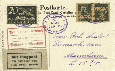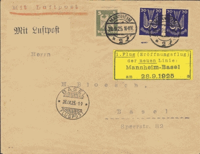 Am 28.9.1925 wurde die Strecke Basel – Mannheim durch die Balair AG Basel/Schweiz eröffnet.