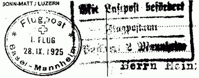 Villingen, Konstanz, Stuttgart und Frankfurt geflogen. Ab 28. September 1925 beflog die Baseler Luftverkehrs A.G. die Strecke nach Mannheim mit Kabinen-Flugzeugen.