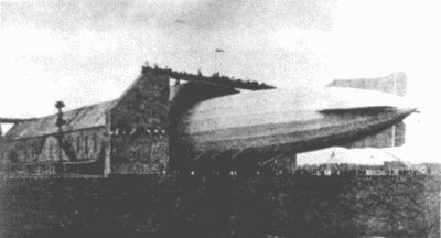 Luftschiffhalle mit einer Länge von 184 m, einer Breite von 35 m und einer Höhe von 28 m als eine von 14 festen Hallen fertiggestellt war.