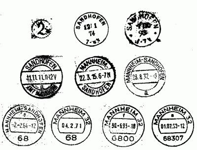 Der in in der Sandhofener Devisenpoststelle bis dahin benutzte Stempel ist nicht überliefert, gemäß der