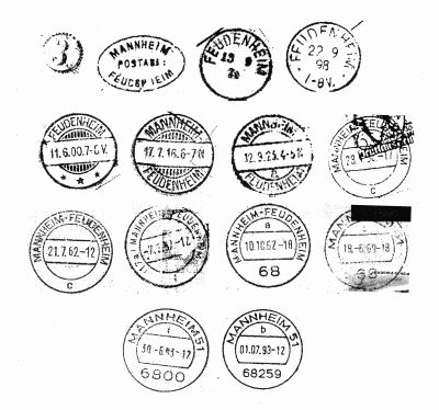 nicht mit dem Postladenstempel entwertet worden war, wurde das mit dem Mannheim-Stempel nachgeholt. Im Normalfall saß der Postladenstempel aber neben der Marke, die dann in Mannheim